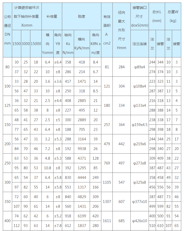 通用型波紋補(bǔ)償器技術(shù)參數(shù):公稱(chēng)壓力1.0MPa