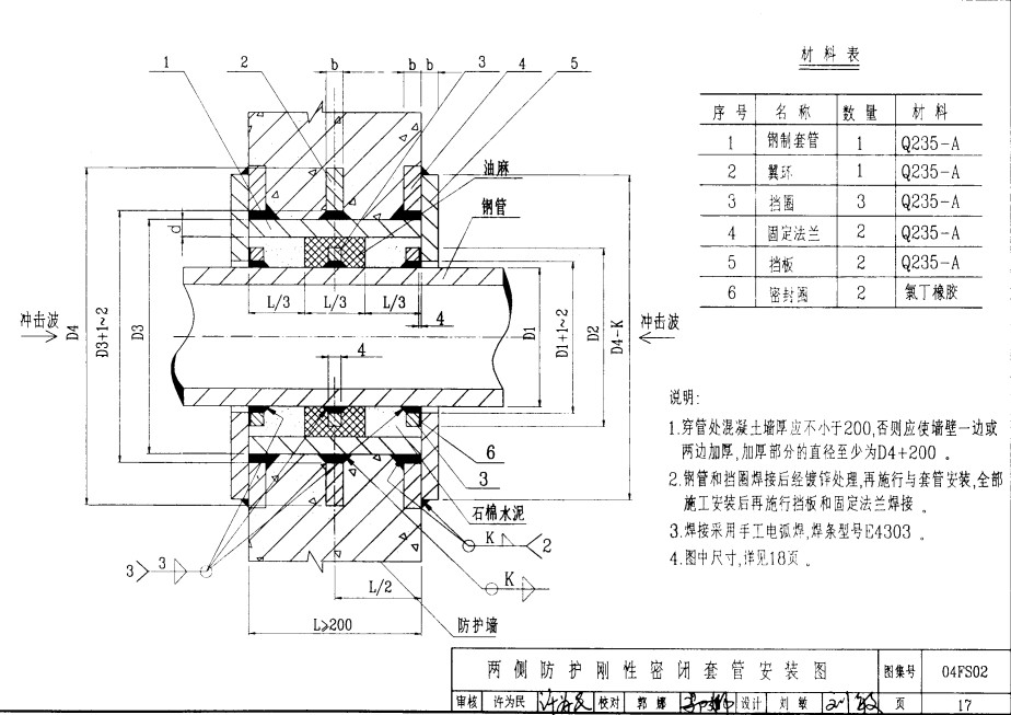 兩側防護剛性密閉套管適用于人防,地下工程,化工,鋼鐵,自來水,污水處理等管路穿墻壁要求嚴密防水之處。